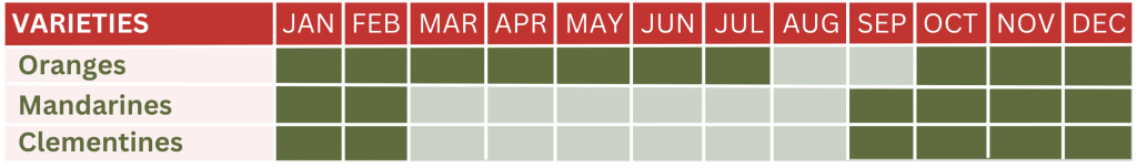 Lebanese oranges are available from October until July, while mandarins and clementines are available from September till February.