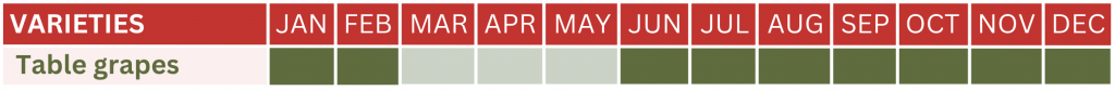 Lebanon’s table grapes harvest season is from June to February. Compared to European countries Italy and Spain, Lebanon has a complementary window from December to February.